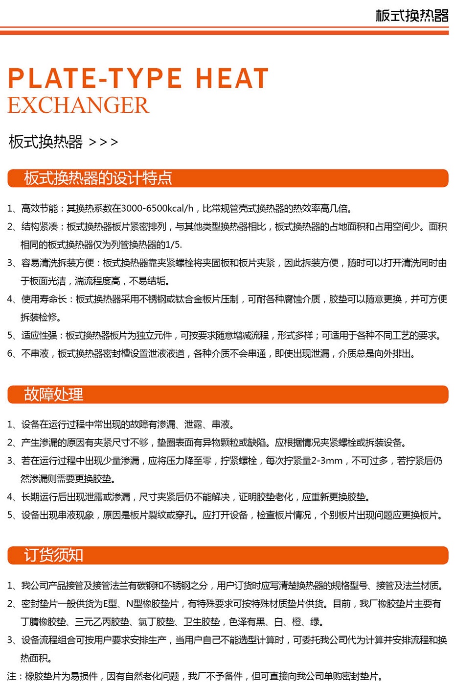 板式换热器的设计特点、故障处理、订货须知