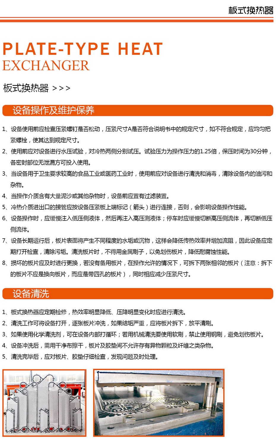 板式换热器的设备操作、维护保养、设备清洗